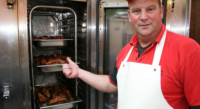 Das Fleisch stammt aus ausgewählten fränkischen Bauernhöfen und wird ständig auf Qualität kontrolliert.